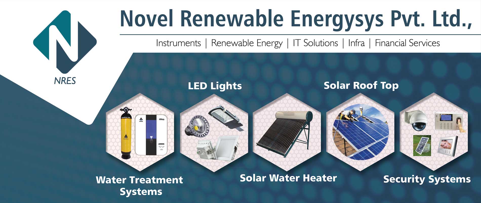 The registered office of the company is located at #40-25-54, Sevaniketan Road, Srinivasa Nilayam, Patamatalanka, Vijayawada-10, Krishna District, Andhra Pradesh. Novel Renewable Energysys Pvt Ltd was incorporated in 2013, to assist the Clean and Green Technologies in providing total solutions and reducing costs associated with research and development in the fields of Solar, LED, Safety and Security Systems, Water Treatment Systems and Wind Energy. The goal of Novel Renewable Energysys Pvt Ltd is to recommend appropriate solutions to its customers that result in cost reduction and improved quality. With our innovative ideas, wide coverage, competence and revolutionary ventures as our capital, Novel Renewable Energysys contributes to the demanding needs of customers related to Clean and Green Technologies.